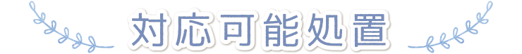 人工呼吸器管理、吸引、CVポートなど中心静脈栄養管理、点滴、経管栄養管理、尿道留置 カテーテル管理、胃瘻管理、ストーマ管理、褥瘡処置、その他